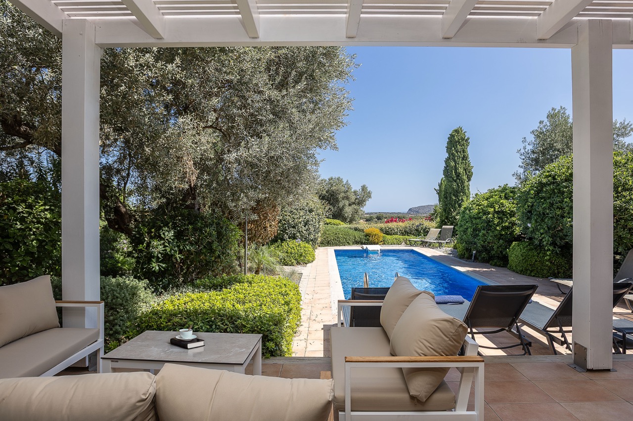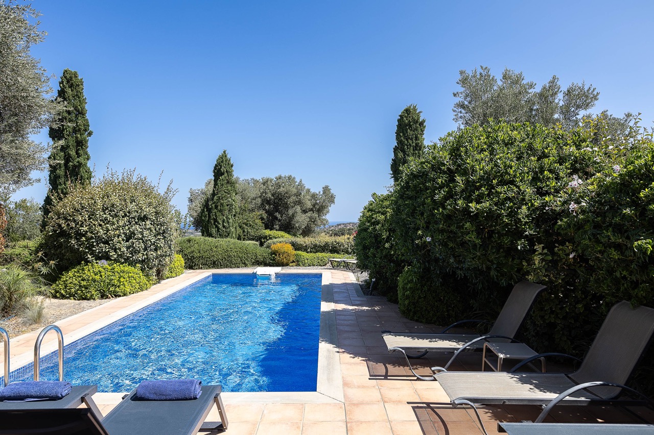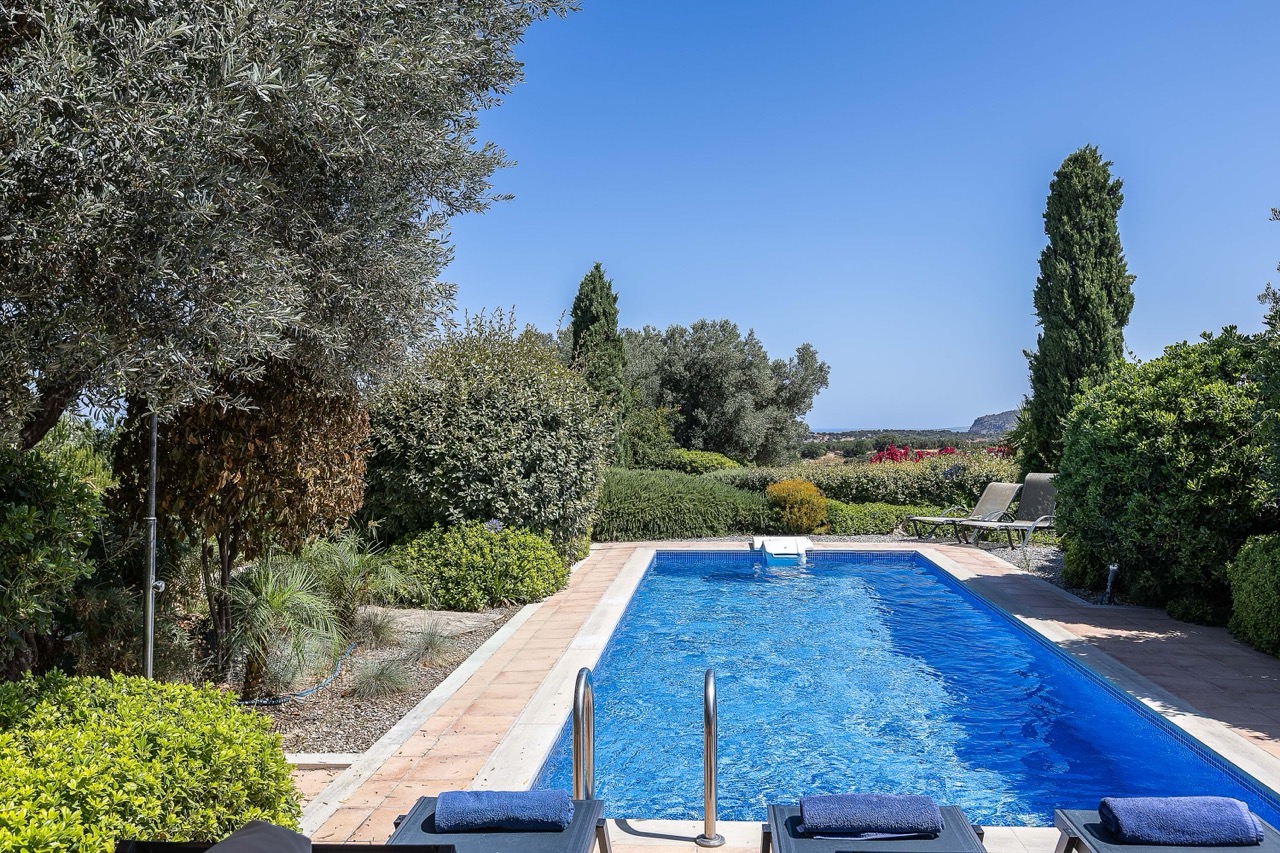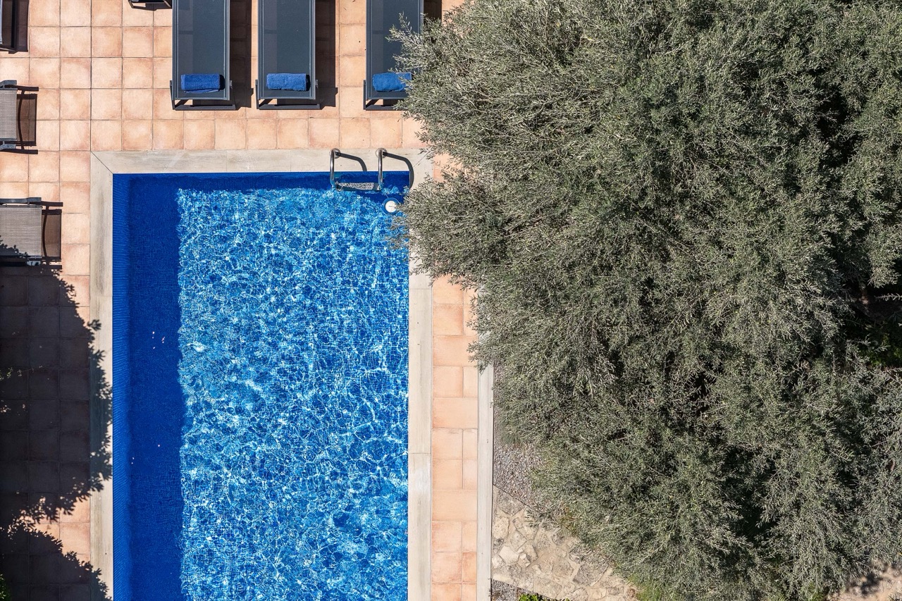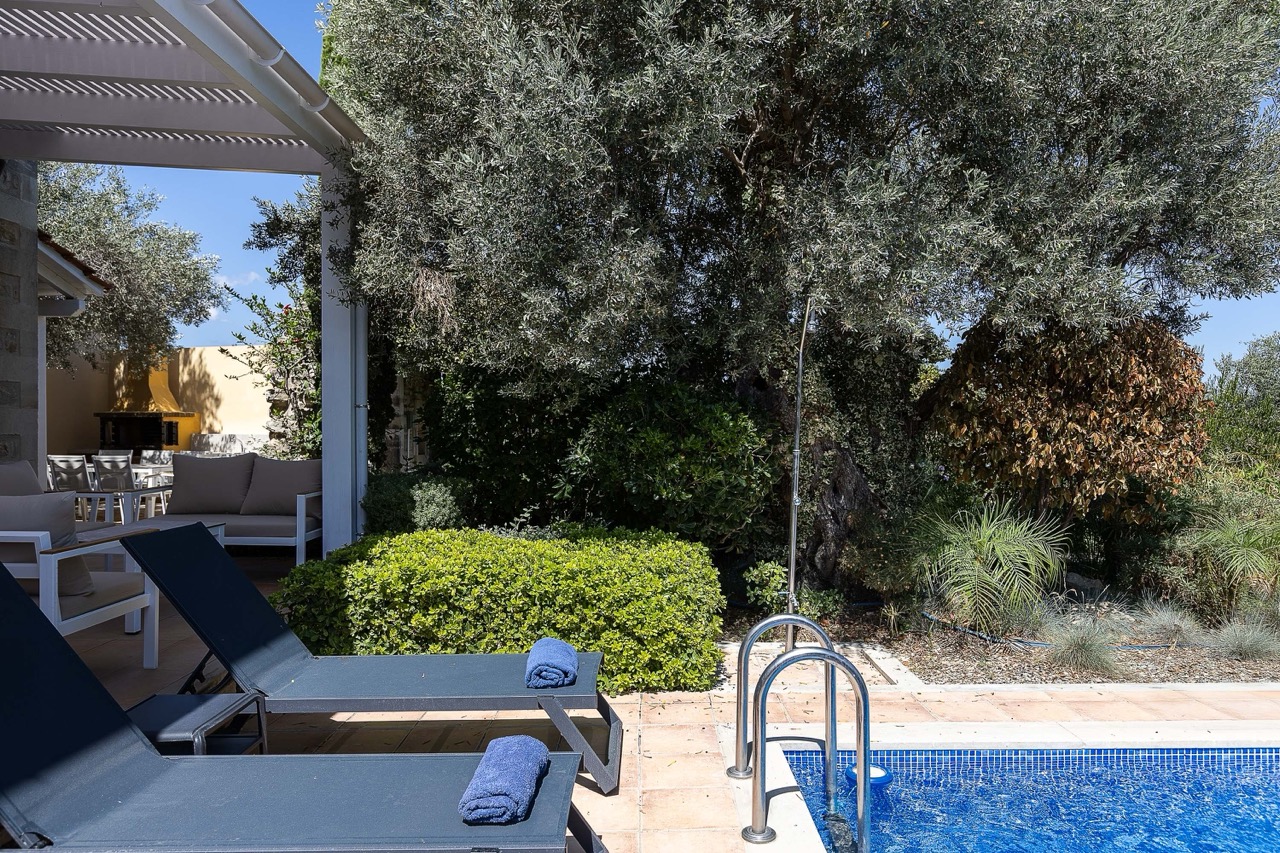 Olive trees, Mediterranean plants, and a pool hidden in greenery — total privacy