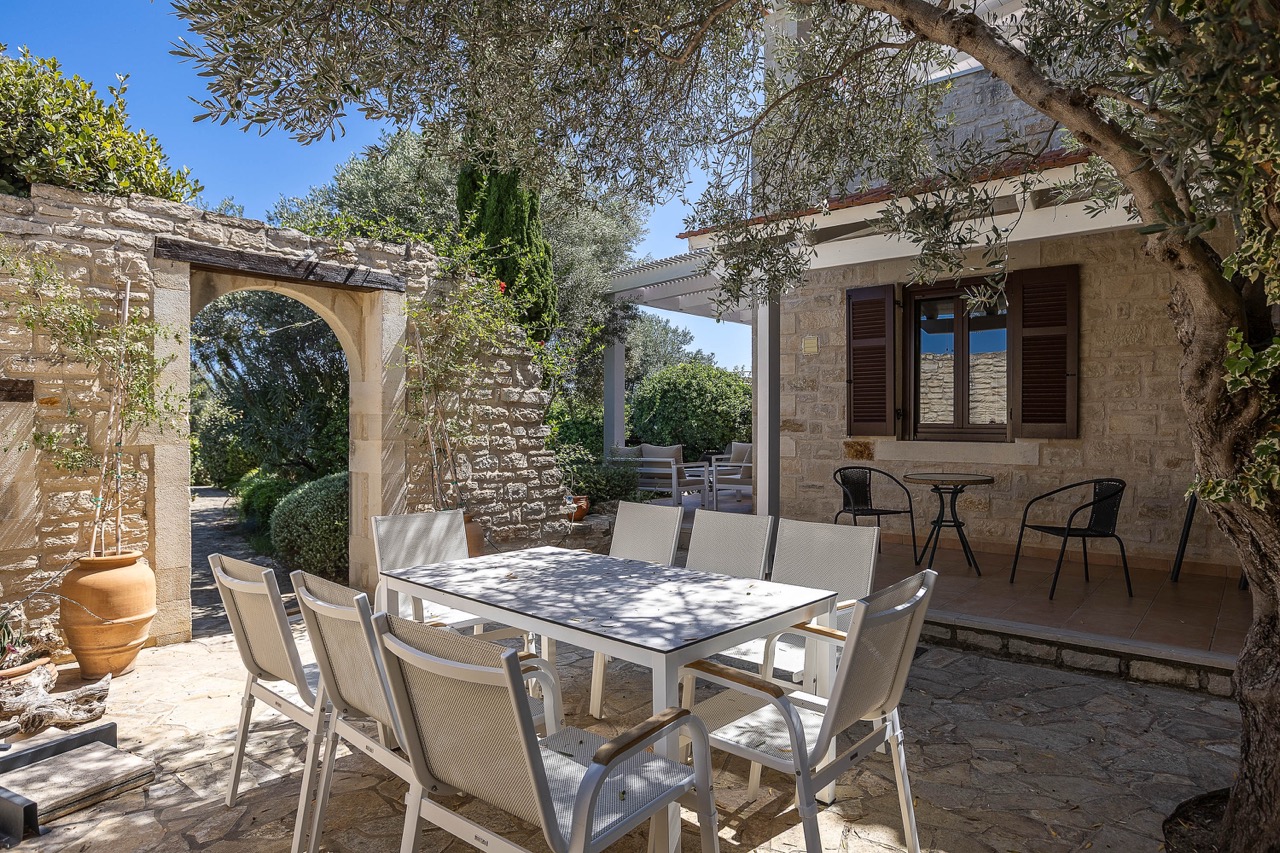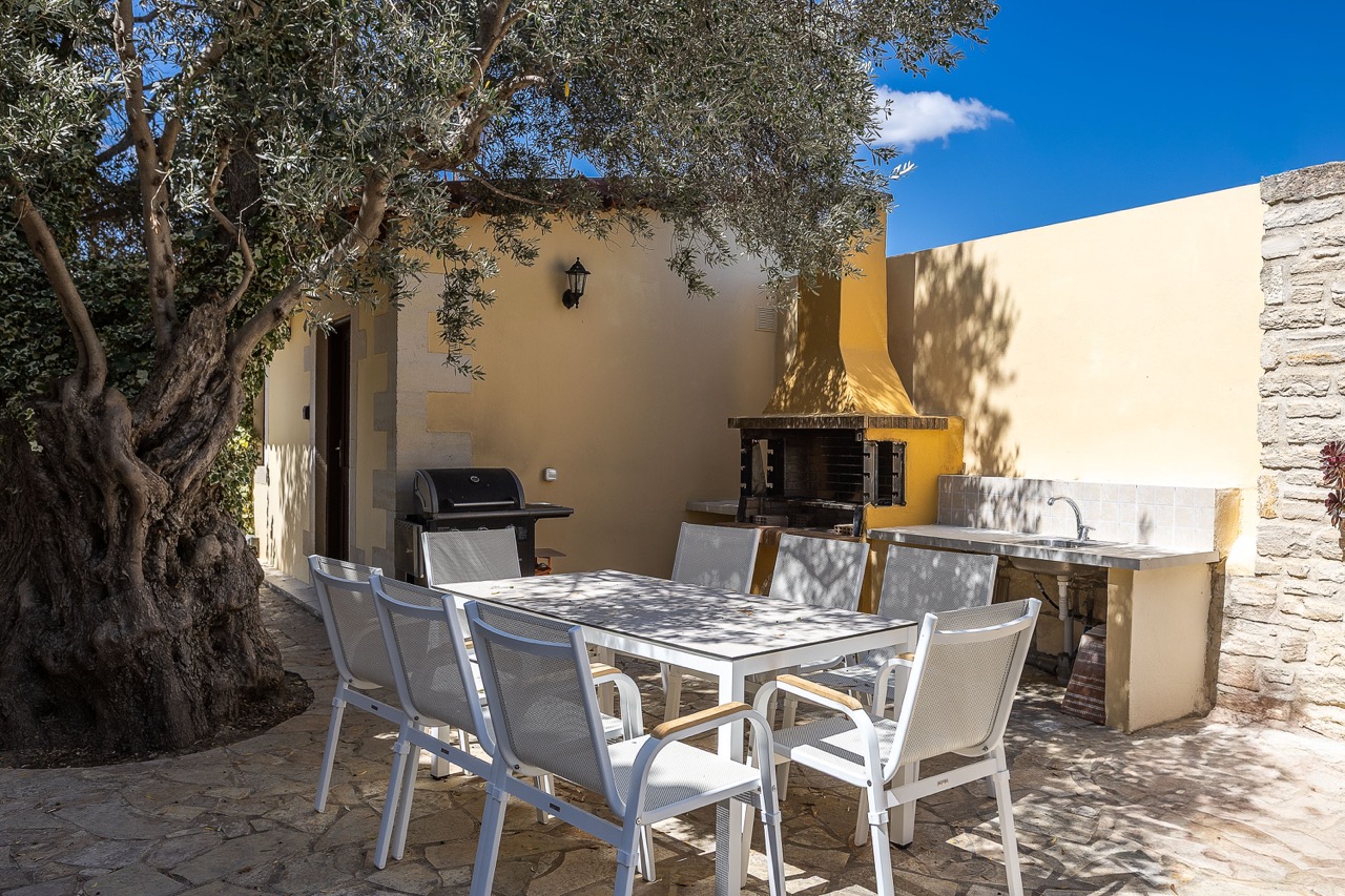 BBQ area in the garden — fresh fish from the coast, local lamb, and evenings under the stars
